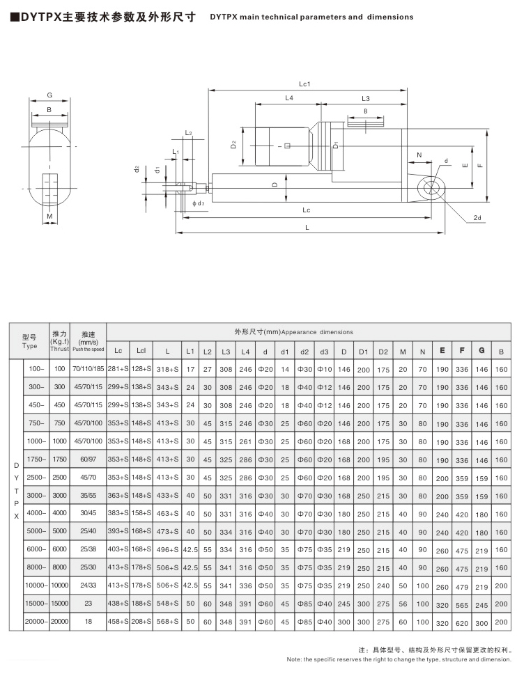 拉力/推力(10N):1250/1600、2000/2500、3200/4000、5000/6500、8000/10000、11500/15000